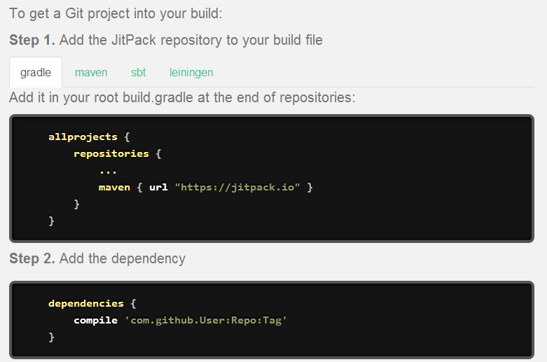上传完成之后,JitPack会自动生成引用该仓库的配置信息: